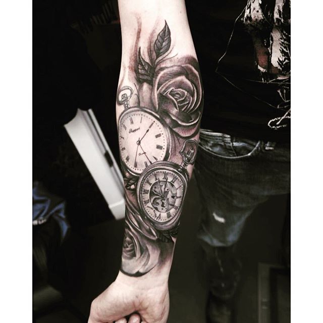 Forearm rose and clock tattoo designs. We did not find results for: Check spelling or type a new query. Maybe you would like to learn more about one of these?